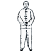 1)原地兩足不動,左手心貼小腹,右手心貼左手背,[女子相反],十指張、身直,