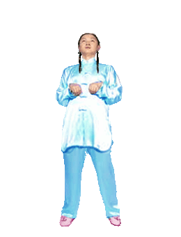 第一式:熊運 1、五指彎曲﹐拇指輕捏指食指與中指之中而手握空拳﹐虎口撐圓﹐這手型為“熊掌”﹔ 兩拳拳眼相對,罝於下腹;低頭目視兩拳。 2、拳貼腹、兩臂彎肘稍離身。兩腿固定站立﹐胯不動﹐以腰為軸,上身順時鐘 走圓形搖動;同時兩拳沿右肋和上腹、再接左肋和下腹劃圓;雙眼視線隨上身搖晃 的環走。 3、4 ﹕同 1 、2,左右相反,上身運行搖動方向是逆時鐘。 做完次兩後,兩拳變 掌放下,自然垂下於體側;目平視﹐調息。 以上 動作做次兩。 要領: 1、兩臂內旋而牽拉肩背肌肉,對頸、肩關節周圍炎等有 防治作用;並可增強腰背力量。 2、引導腹內部運動,可增強脾胃等中焦內臟的功能。 練功口令: - 握拳旋腰,順時鐘﹕左、右、右、左。 反時鐘;右、左、左、右。 [ 左右各做兩 次] 第二式:熊晃 1、重心右移;左髖上提(提胯),左腳離地,再屈左膝;兩掌握空拳成“熊掌”;目 平視。 2、重心前移;左腳向左前落地,腳掌重力踏實,右腿稍蹬直成左弓步;右轉身,左 臂內旋前靠,左拳擺至左膝前上方,拳心朝左;右拳擺至身後,拳心朝後;目視左 前方。 3、身體左轉,重心後坐;右腿屈膝,左腿伸直;擰腰晃肩,帶動兩臂前後弧形 擺動;右拳擺至左膝前上方,拳心朝右;左拳擺至身後,拳心朝後;目視左前方。 4、右轉身,重心前移;左腿屈膝,右腿伸直;同時左臂內旋前靠,左拳擺至左 膝前上方,拳心朝左;右拳擺至身後,拳心朝後;目視左前方。 5、8 同動作1至4,左右相反。 重複1至8 一遍,左腳上步,開步站立;同時,兩手自然垂於體側。兩掌向身體 側前方舉起,高至胸,拳心向上;屈肘,兩掌內合下按,自然垂於體側;目平視﹐ 調息。 要領: 1、上身左右晃動,意在兩脅,可以調理肝脾。 2、提髖行走,加上落步的微震,可增強髖關節周圍肌肉的力量,提高平衡能力, 對年老下肢無力的人、髖關節損傷、膝痛等症有幫助。 3、向前落步時,氣沉丹田。身體重心後坐時,運氣至命門,能加強先天氣與後 天之氣的交流。尤其是重心後坐,脊柱後彎,內夾尾閭,後凸命門,開大椎,通三 關 (尾閭關、夾脊關、玉枕關) 而疏通督脈經氣,因而增強全身的陽氣。 練功口令: - 提胯踏步﹐弓步靠拳; 後移重心﹐轉腰擺拳; 弓步靠拳﹐上步站立。 [ 左右各做兩 次] |