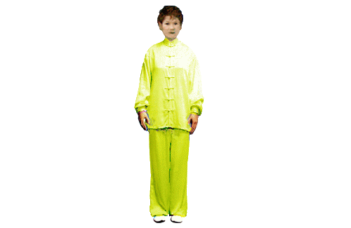 預備姿勢﹐務求立身中正﹐ 站立穩固﹐內氣順暢自然。 [詩云]﹕ 虛領頂勁首為先 含胸拔背靠自然 尾閭中正垂筆直 體內中氣沉丹田 鬆腰寬胯臀收斂 活膝固腿裹襠圓 沉肩墜肘掌心勁 十趾抓地踏涌泉 提示 1。兩目平視﹐并步站立﹐ 2。左腳橫步﹐寬與肩齊﹐ 3。以腕領臂﹐雙手平提﹐ 4。曲膝下按﹐氣沉丹田。 |