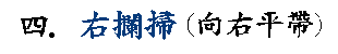 - Turn over palm to face down, turn body right to form a right bow stance, slightly towards the SE