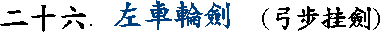 simultaneously hook sword downward to the left at waist level with the tip pointing hehind,