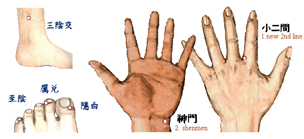 左右手每邊做三十六次。 另腳穴 (不在本章內) 可按 隱白、厲兌、至陰、三